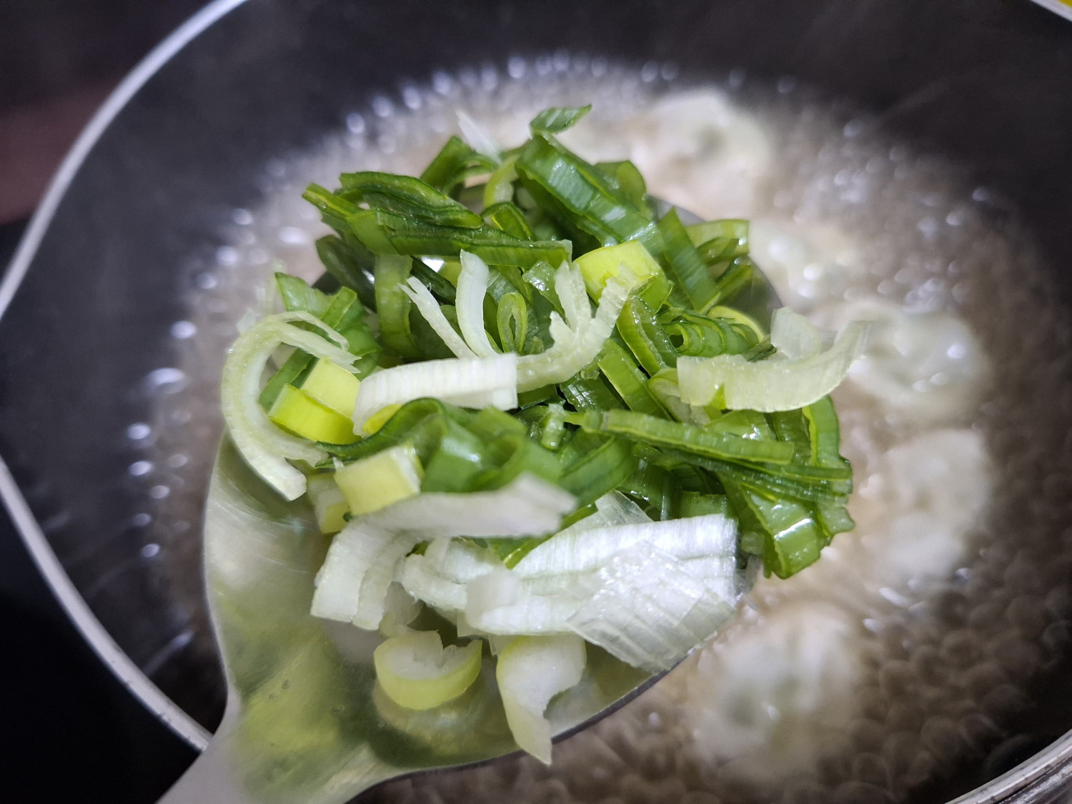 썰어둔 대파를 넣고 2분간 보글보글 끓여줍니다.