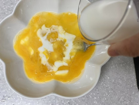 우유를 넣어주면 계란물이 부드러워지고 색감이 노릇노릇 이쁘게 나온답니다.