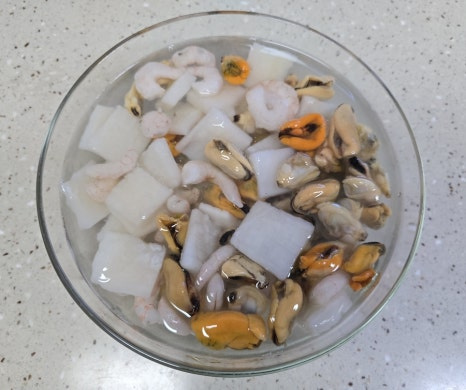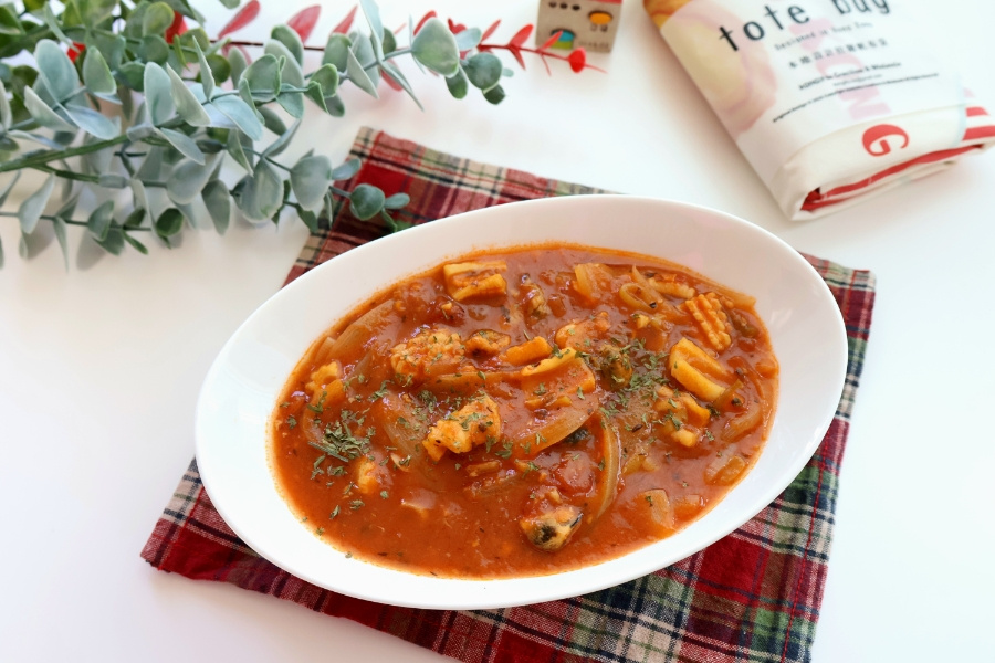 부야베스는 해산물 손질이 가장 큰일인데, 우리는 그럴 필요가 없죠! 바로 해물 믹스가 있으니까요.