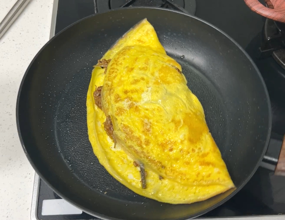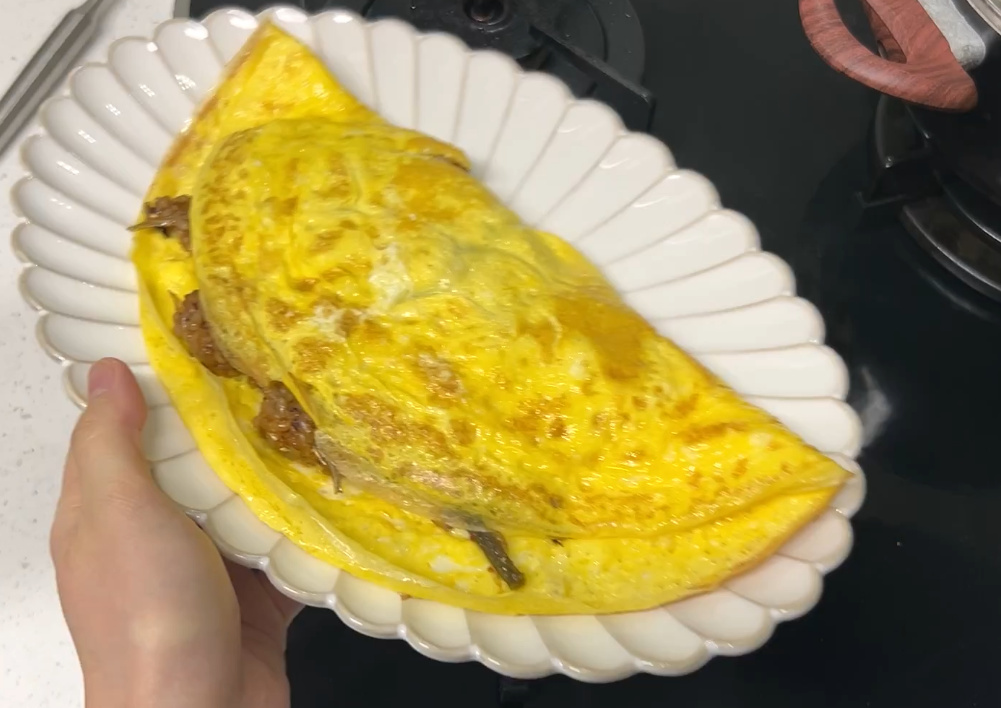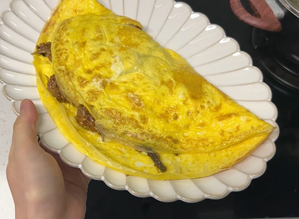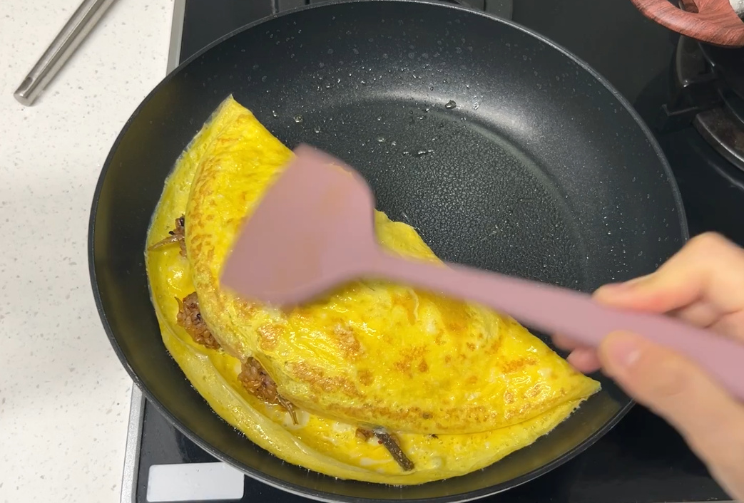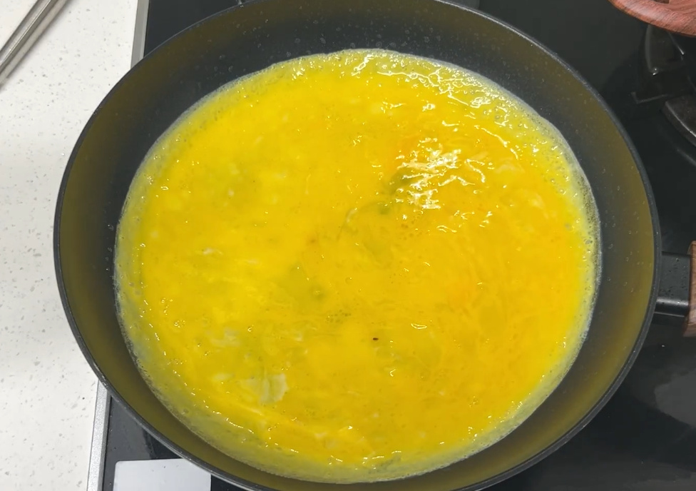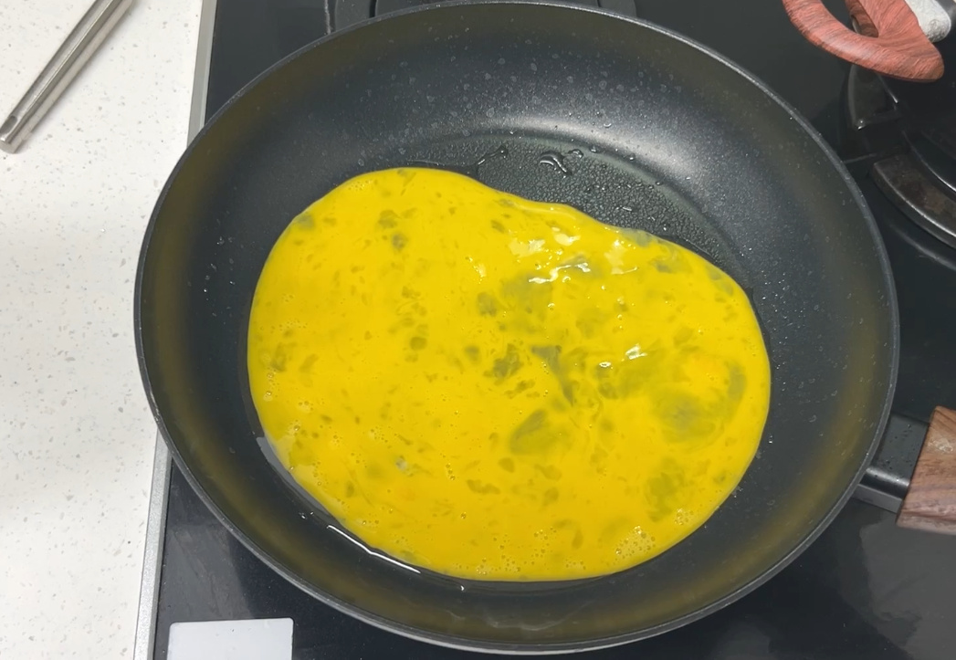 후라이팬에 넓게 계란을 펼쳐주세요