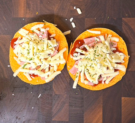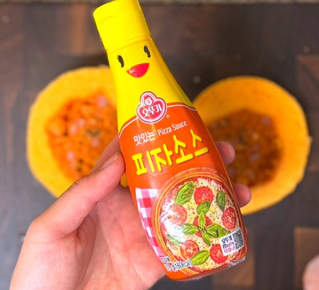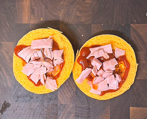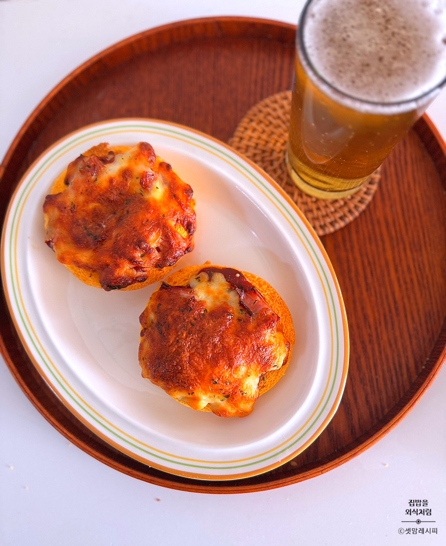 다진 햄과 모차렐라 치즈 듬뿍 올려주세요.