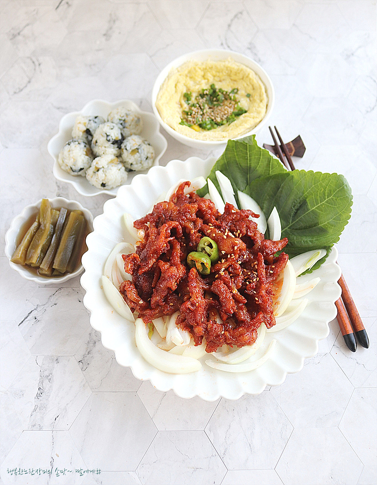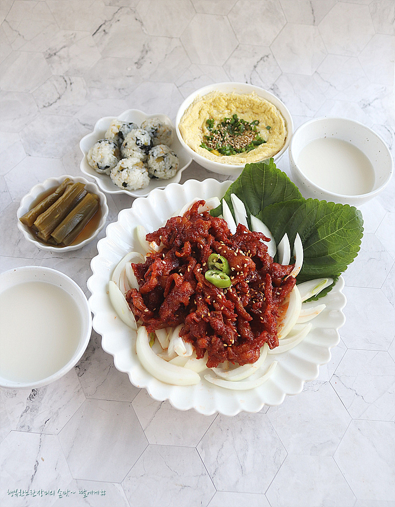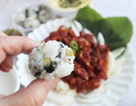매콤할땐~궁채 들어간 주먹밥 함께하니 굿!