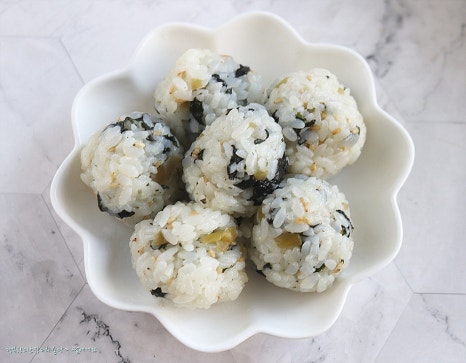 주먹밥,계란찜,궁채장아찌 곁들이니