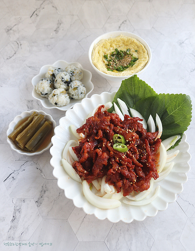 계란찜, 주먹밥, 궁채장아찌 같이 ~