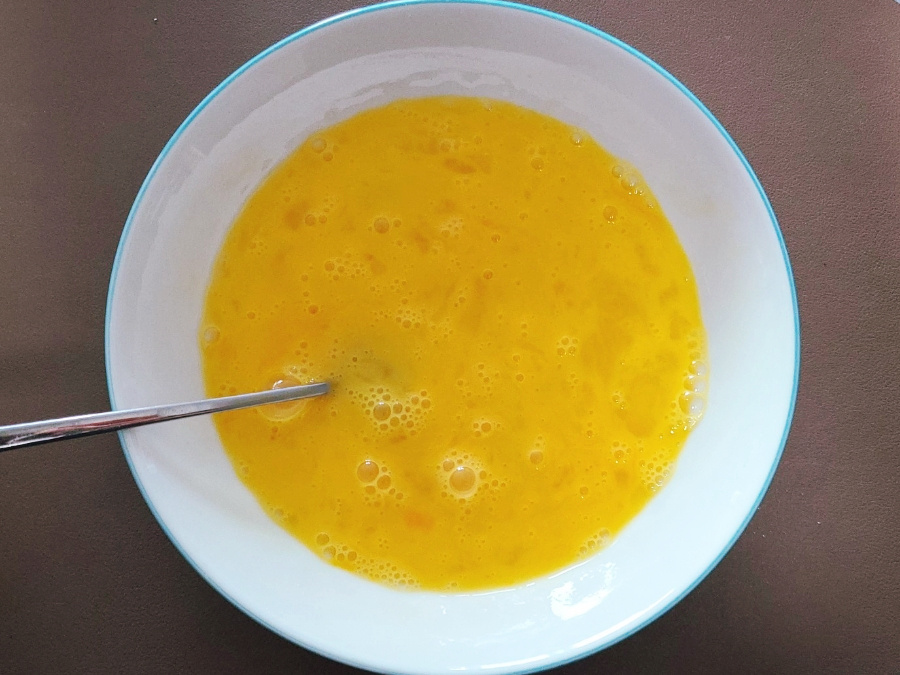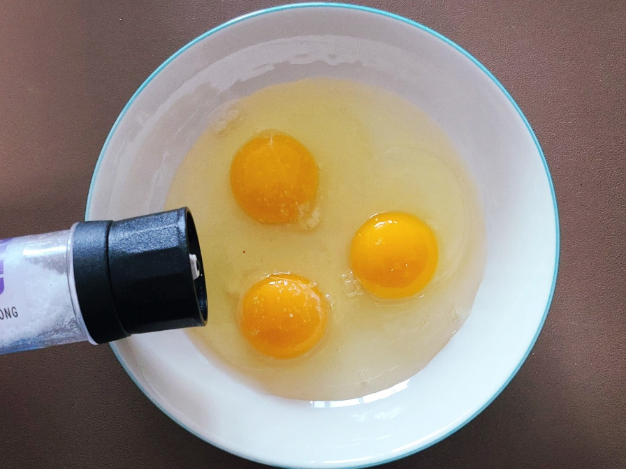 그릇에 계란 3개와 소금 2꼬집 정도를 넣고 숟가락으로 계란을 풀어서 계란물을 만들면 되세요.