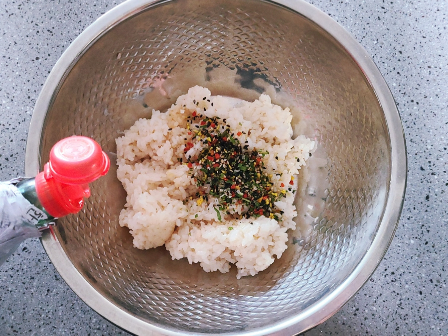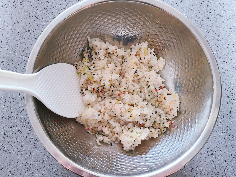 (후리가케 대신에 밥새우를 넣을 경우에 소금의 양을 줄여서 넣어주세요)