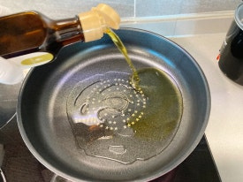 팬에 식용유와 들기름을 2:1 비율로 두르고 팬을 달궈주세요.