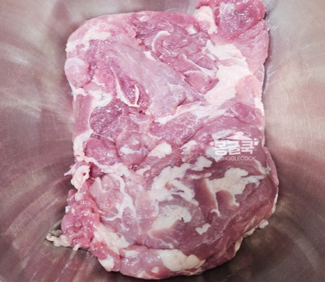 먼저 돼지고기는 키친타월로 가볍게 핏물을 제거해 주세요.