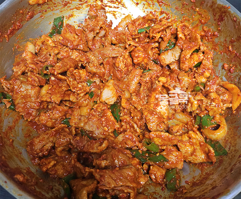 혹시라도 국물이 생기면 다시 강불로 올려 수분을 날리듯 볶아주세요.
