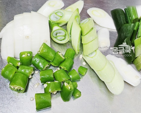 양파와 청양고추도 얇게 썰어 준비해 주세요.