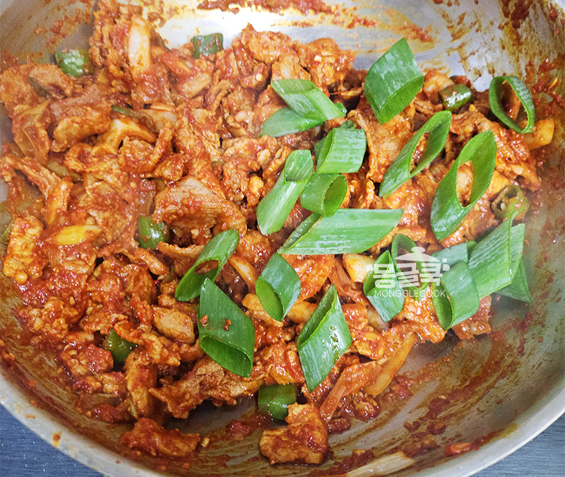 고기가 거의 익어가면 마지막으로 대파의 초록 부분을 넣고
