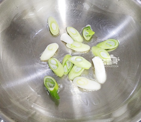 대파 흰 부분을 넣어 중불 이하에서 1~2분간 볶아 향을 충분히 끌어내주세요.