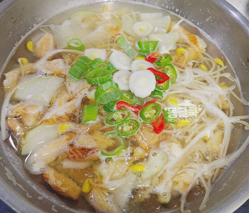 대파와 청양고추(선택)를 넣고 한소끔 더 끓여주면
