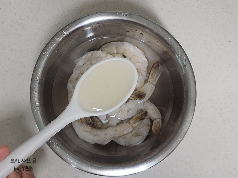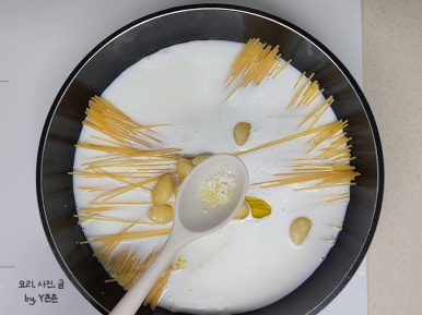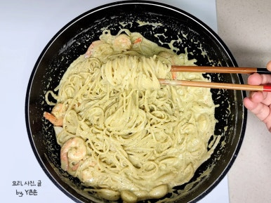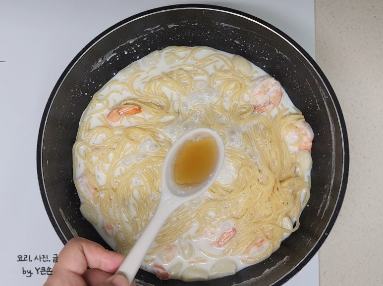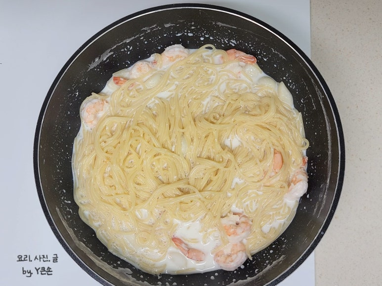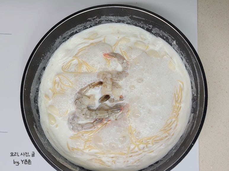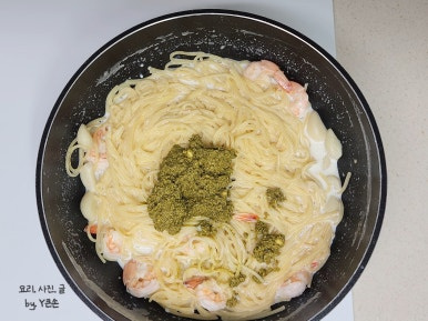미리 넣으면 식감이 흐물해지니 나중에 넣는 게 탱글 하게 익히는 비법이에요.