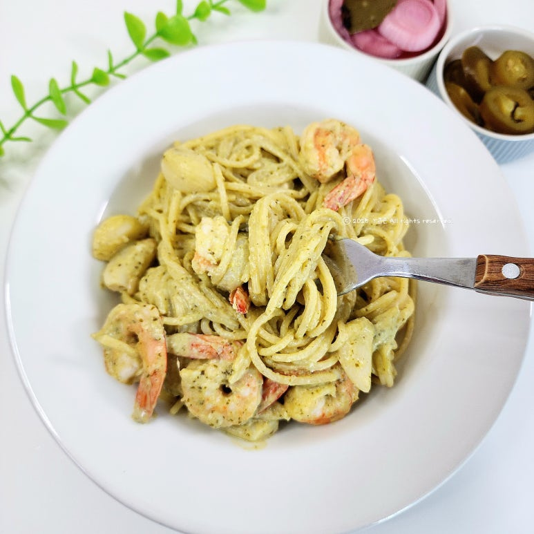 너무 뜨거운 상태에서 넣으면 바질 특유의 맛이 줄어드니 한 김 식히고 넣어주시면 더 좋아요.
