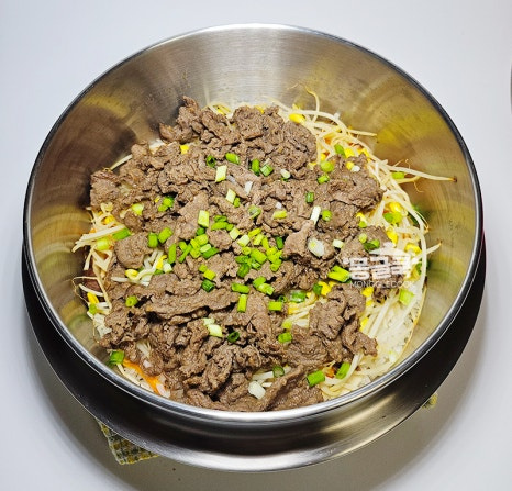 불을 끄고 준비해둔 볶은 소불고기를 밥 위에 얹어