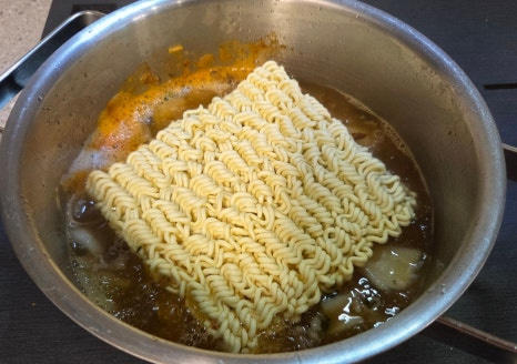 물은 사용하는 라면의 물 정량보다 50ml 적게 넣으면 딱 좋아요