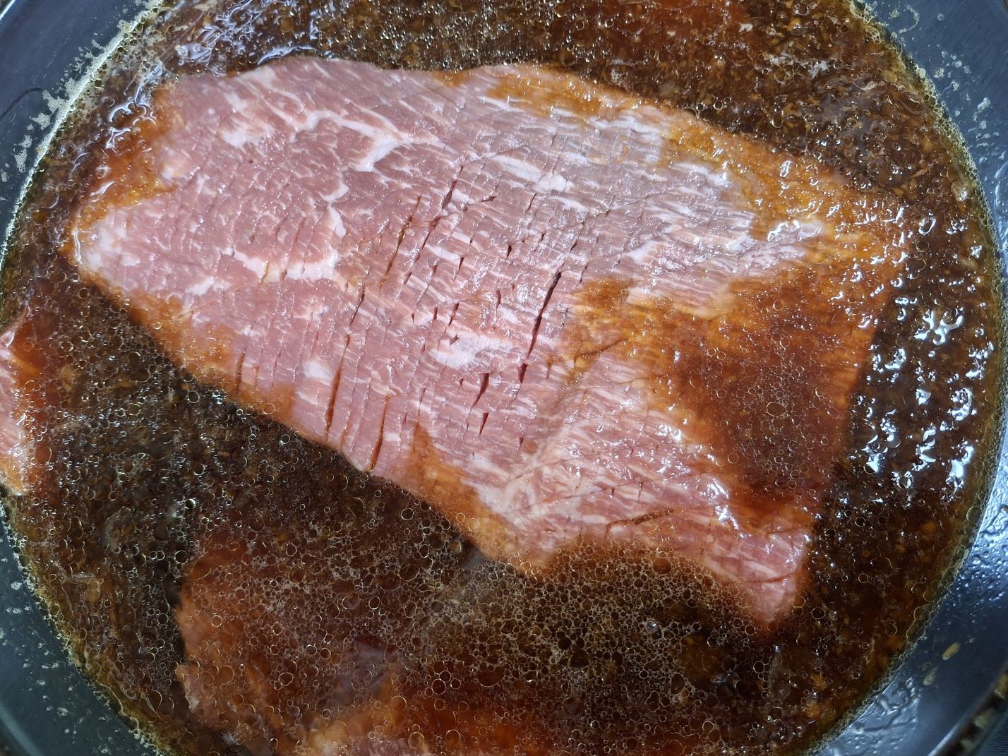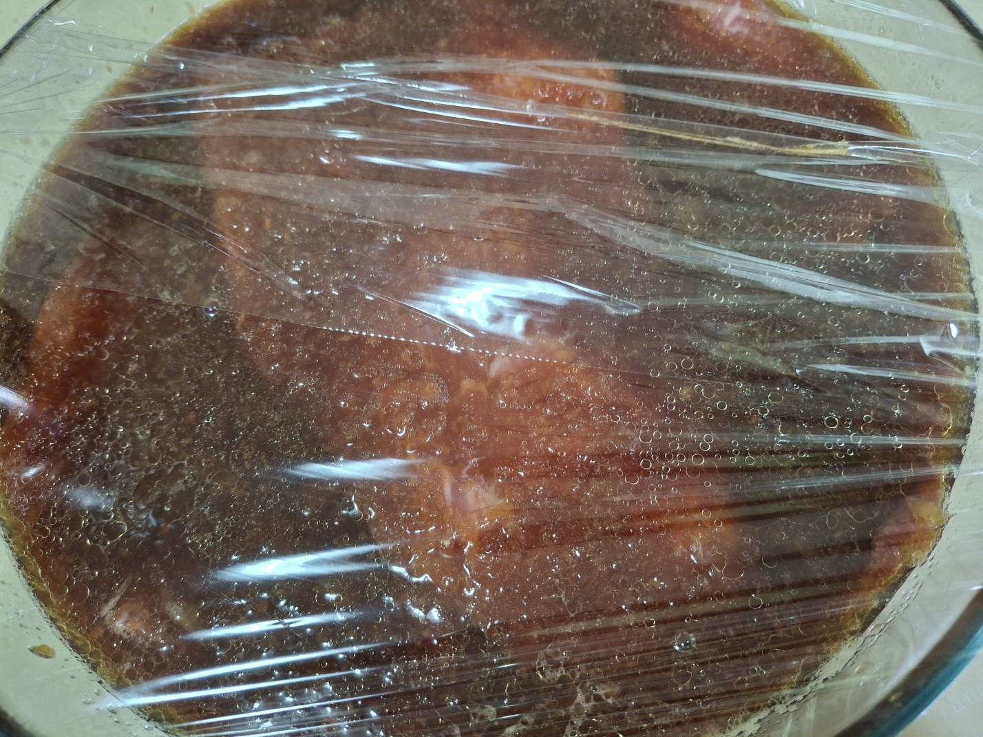 간장 150ml, 맛술 50ml, 생수 300ml, 참기름 2큰술, 갈색 설탕 2큰술, 후추 약간