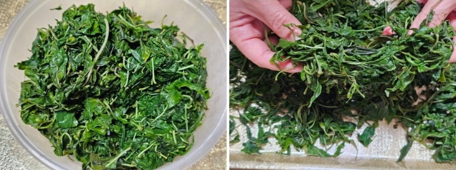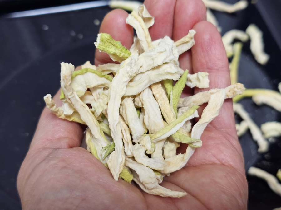 계속해서 높은 온도로 말리면 누렇게 탈 수가 있으니 어느 정도 마른 다음에는 55도로 온도를 낮춰서 말려 줍니다.