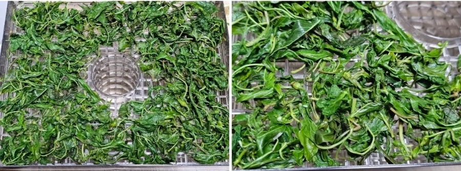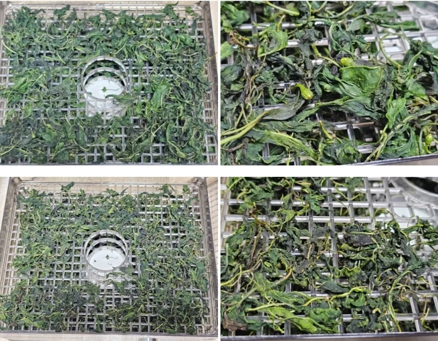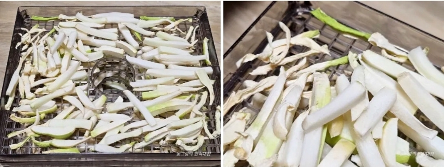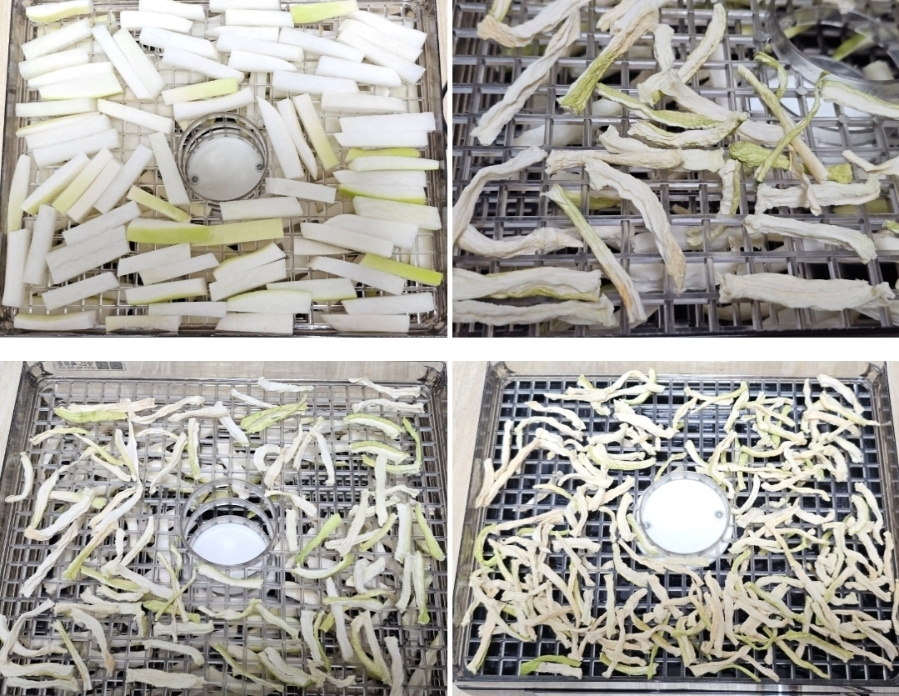처음에는 높은 온도로 시작했다가 점점 마르면서 낮은 온도로 낮춰 말려 줍니다.