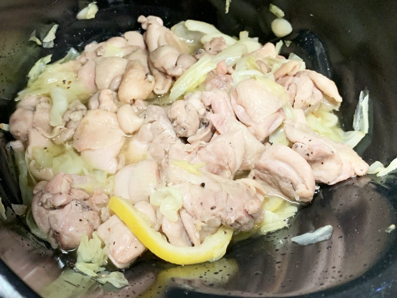 먼저 레몬소금닭갈비부터 조금 잘라서 넣어 줍니다.