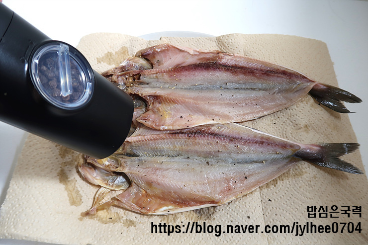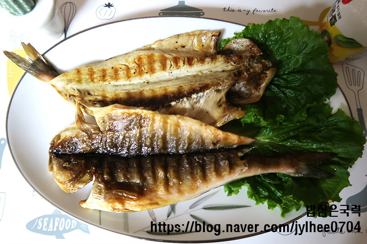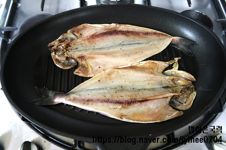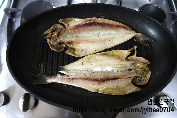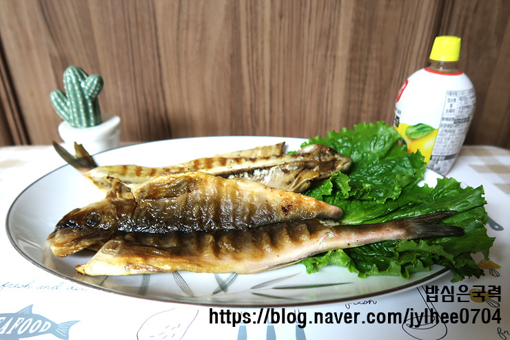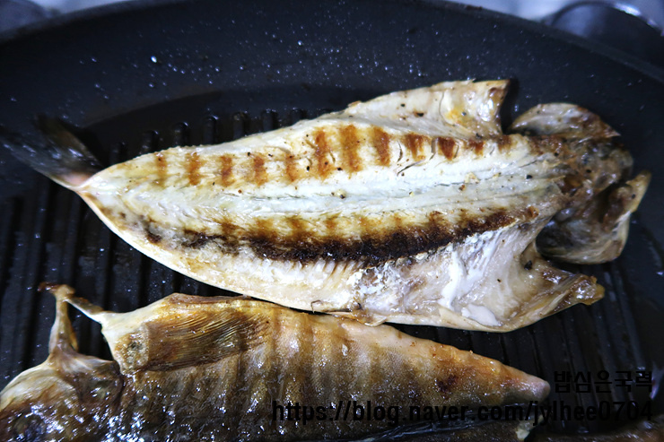 반건조 생선은 수분이 적으니 너무 센 불에 굽면 쉽게 타요.