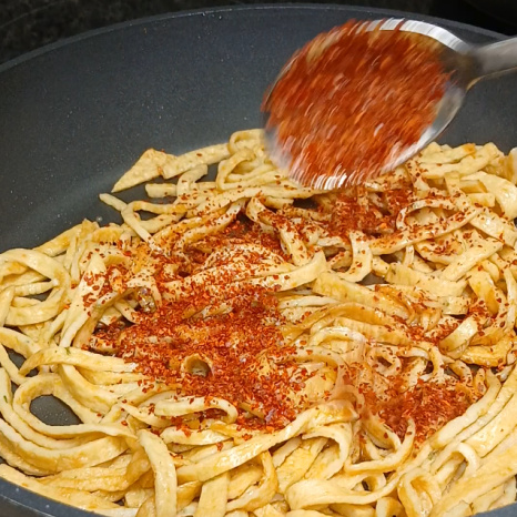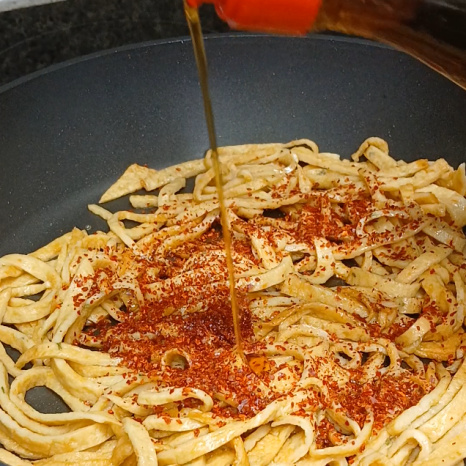 물엿 0.5큰술(또는 올리고당) , 고춧가루 1.5큰술 넣어주세요