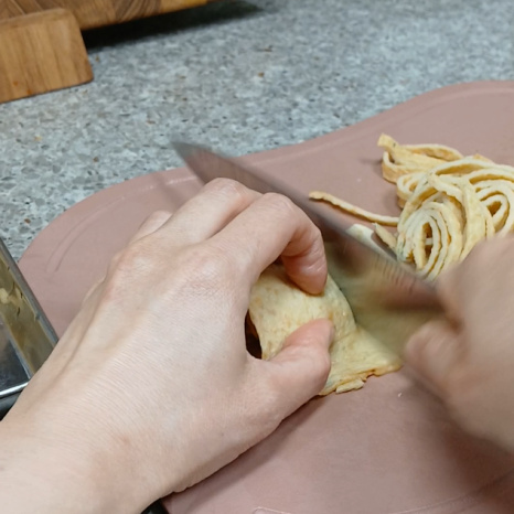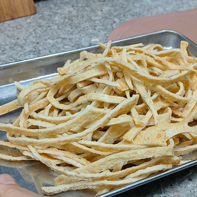 사각어묵은 동그랗게 돌돌 말아서 지단 썰듯 얇게 썰어주세요