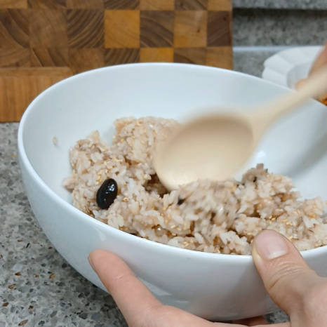 저는 흰밥은 아니고 콩까지 듬뿍 들어있는 잡곡밥 준비했어요 ㅎㅎ