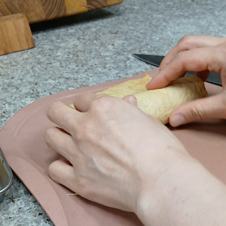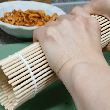 김 발을 말아 두 손으로 단단하게 눌러주세요