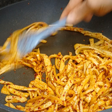 어묵이 노릇노릇해질 때까지 중불로 볶아주세요
