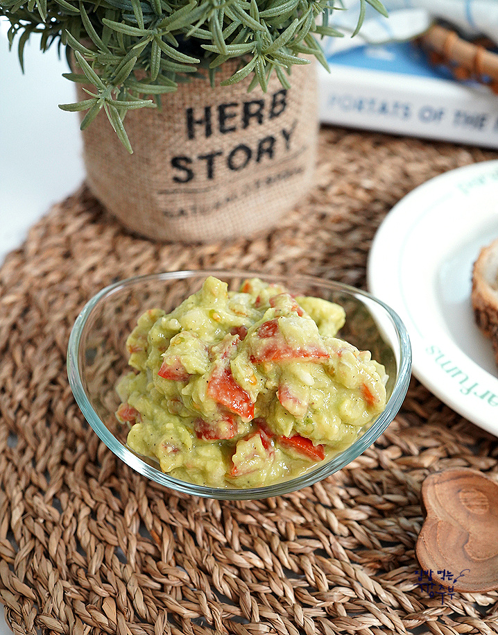 으깬 아보카도에 양파와 토마토를 잘게 썰어넣고 올리브유, 레몬즙, 소금, 꿀, 후추 넣어 쓱쓱 버무려주기만 하면 금방이예요