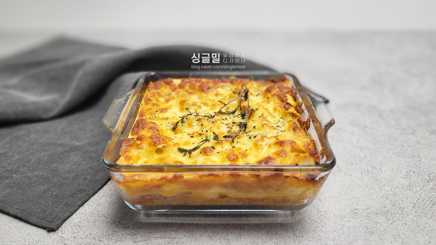이제 오븐용기에 라구소스를 깔고 라자냐를 올린 다음 모짜렐라, 그라노파다노를 평평하게 올립니다. 그 위에 다시 라구소스와 치즈를 반복하며 2단으로 올립니다.