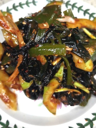 물미역을 끓는 물에 살짝 데쳐야 합니다.