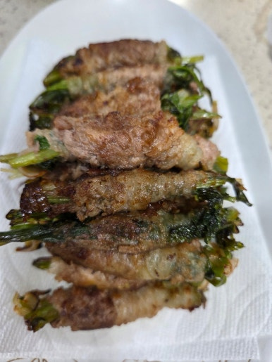 고소한 우삼겹에 미나리랑 대파를 돌돌 말아 만드는 만들기도 쉽고 맛도 좋은 우삼겹 말이