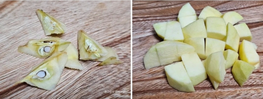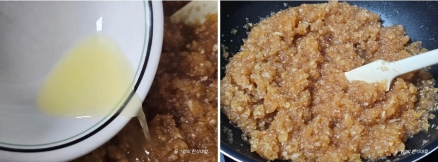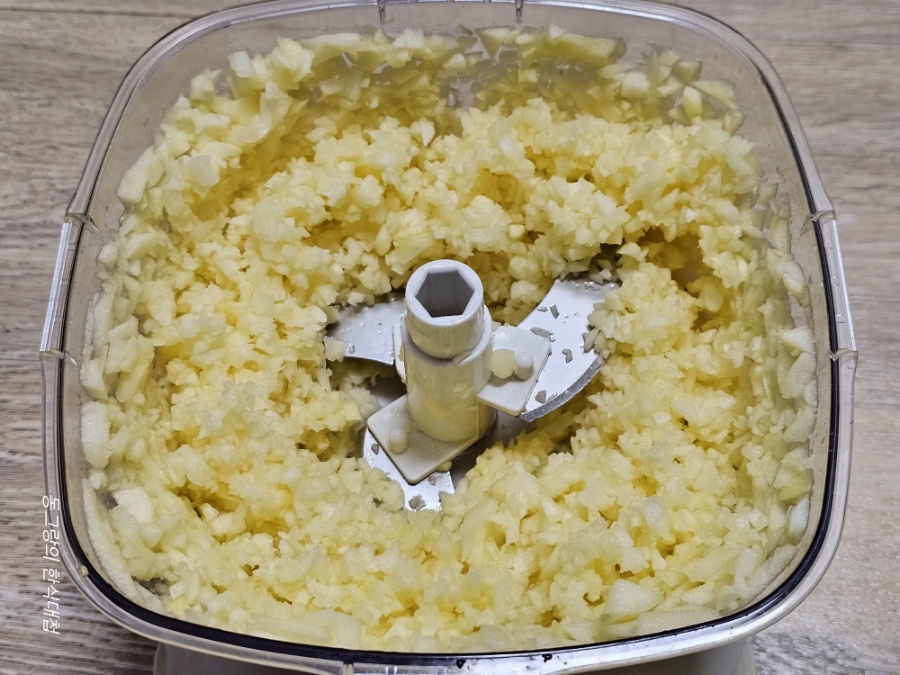 다지기가 없다면 번거롭겠지만 칼로 잘게 썰거나 강판에 갈아 줍니다.