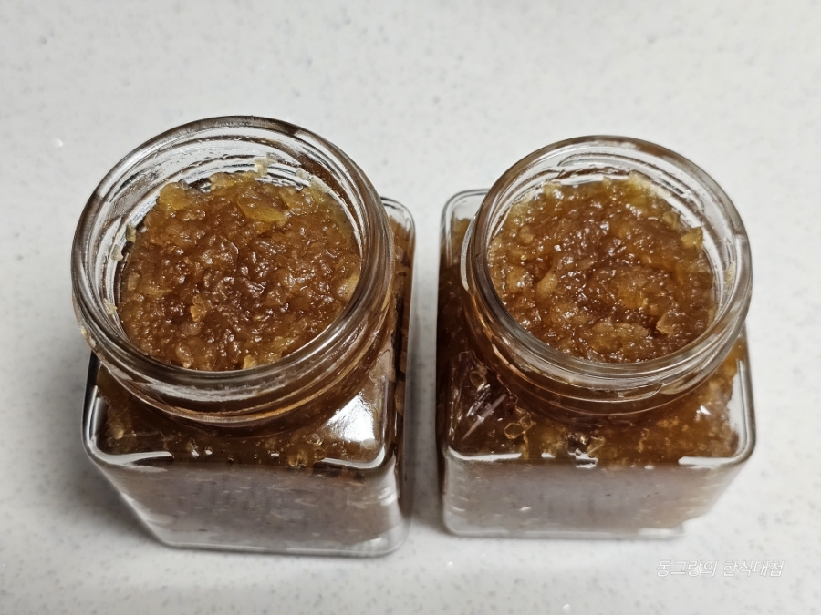 과일이 충분히 달고 양이 많지 않아 빠른 시일 내에 먹을 거라 다진 것이 800g인데 알룰로스는 300g만 넣었어요.
