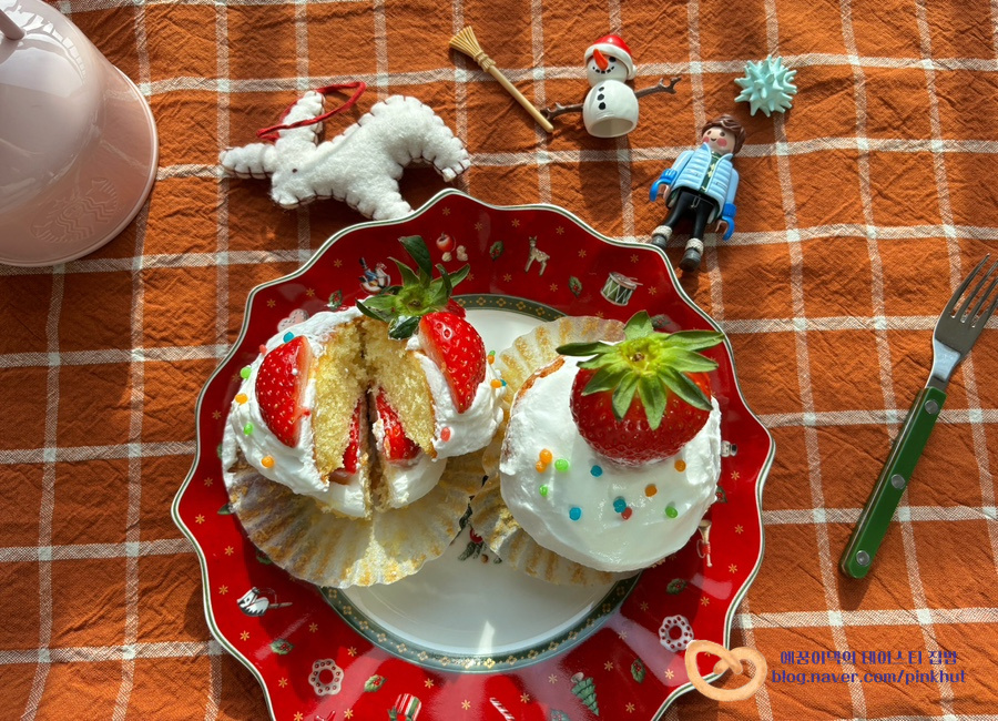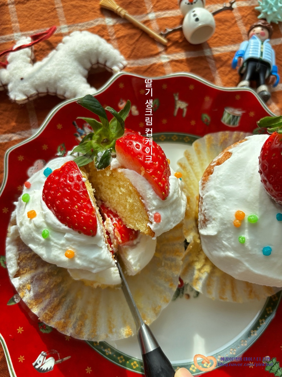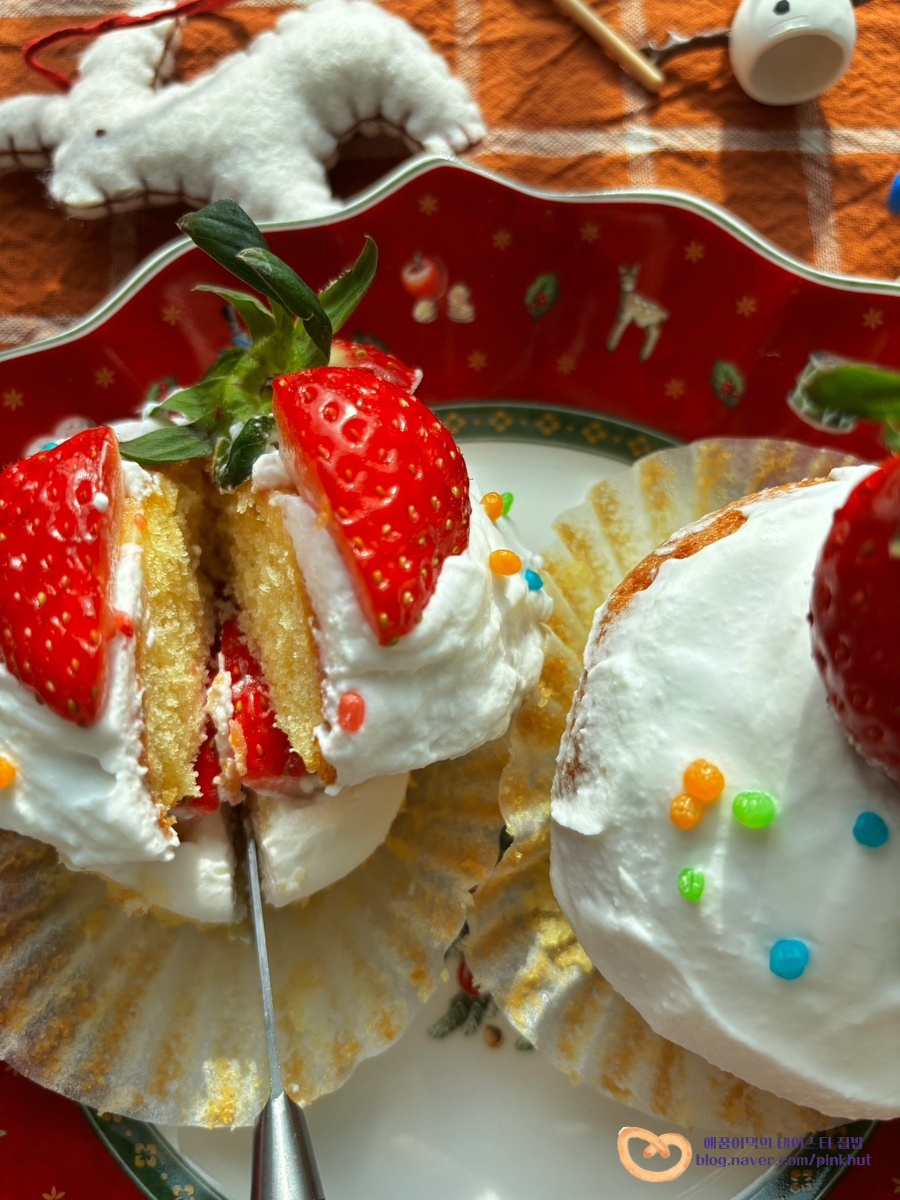 요즘 딸기 생크림 케이크 사려면 너무 비싼데, 요 딸기 생크림 컵케이크는 가성비 좋고 정말 정말 맛있어요.