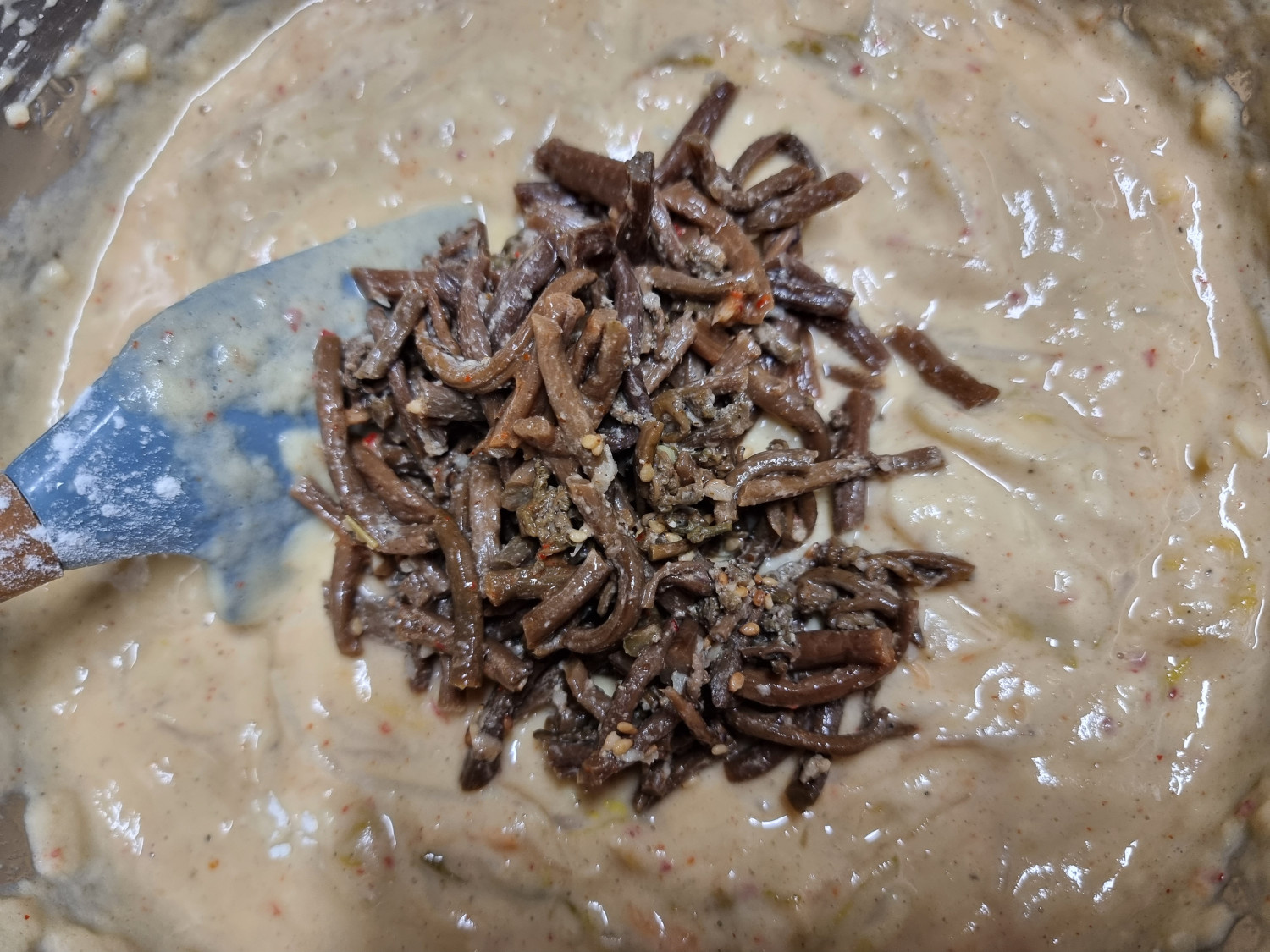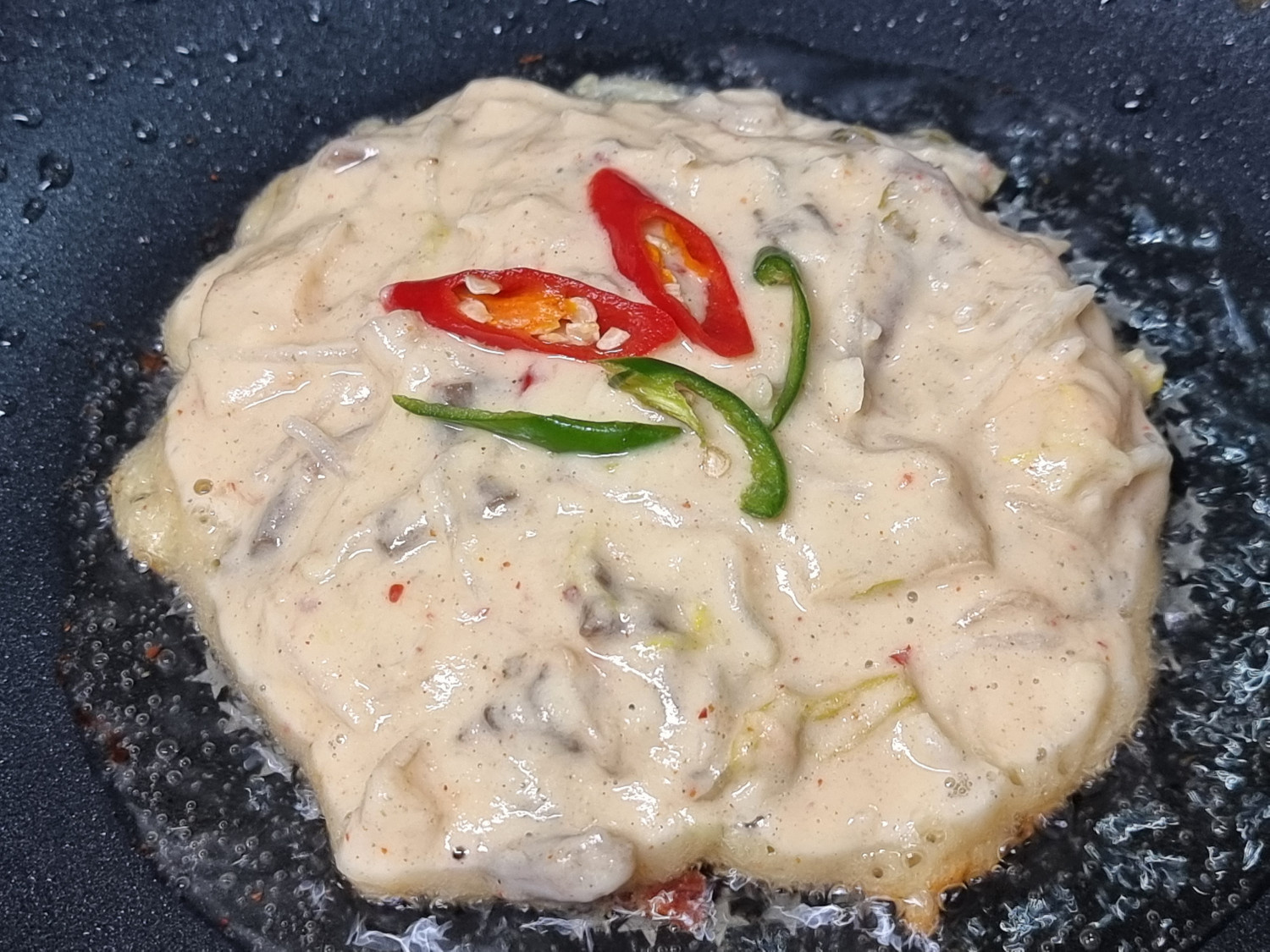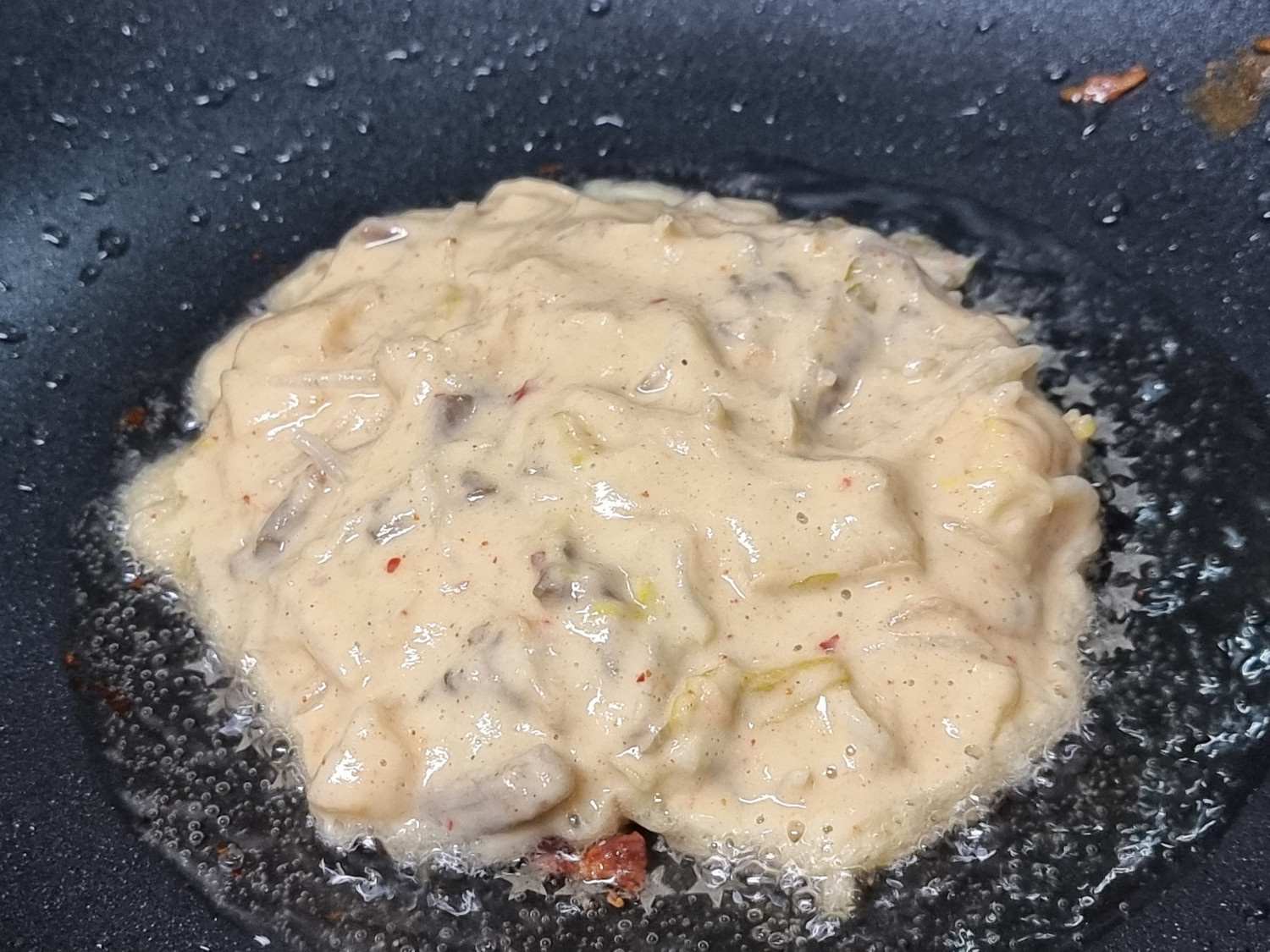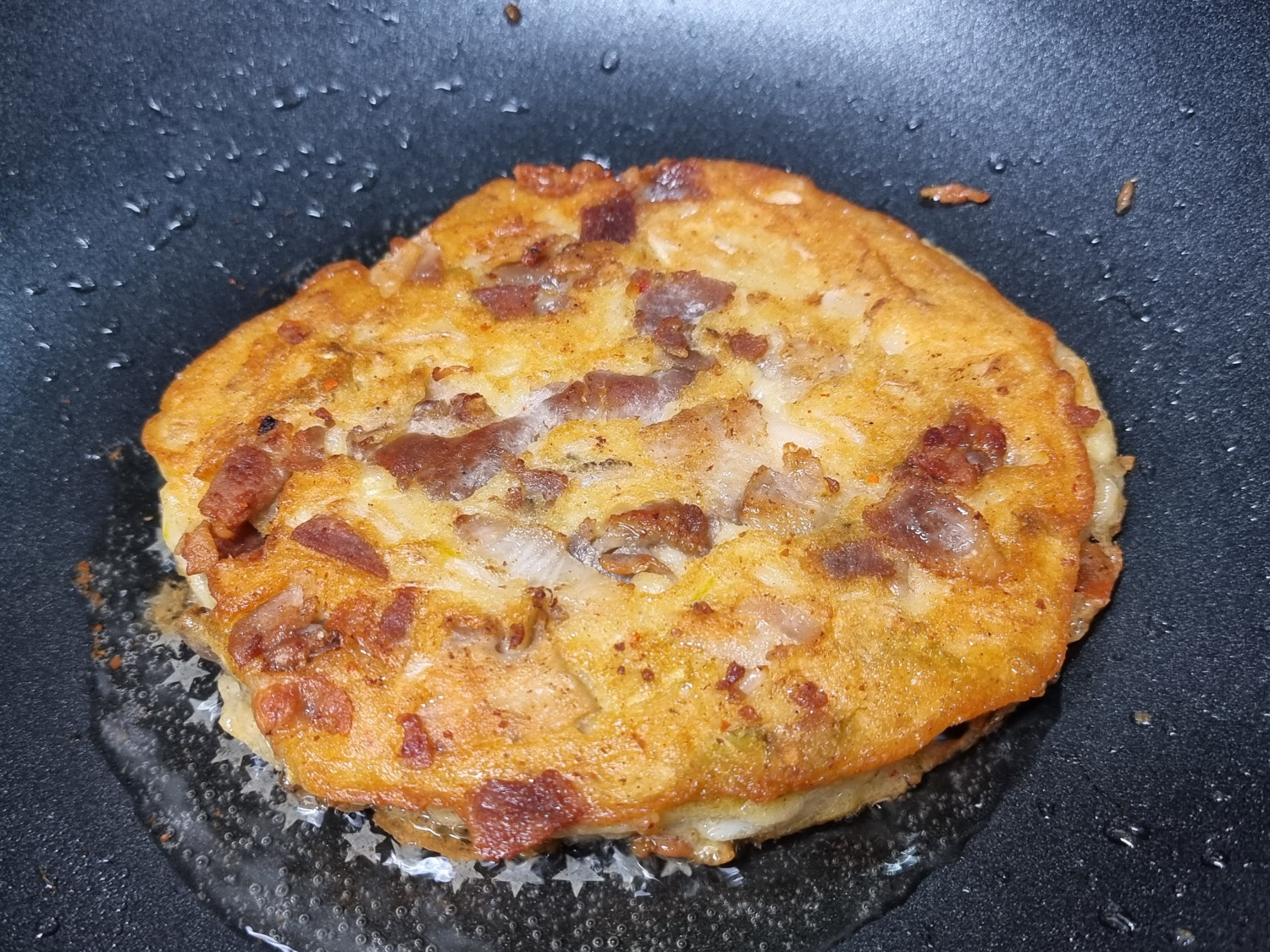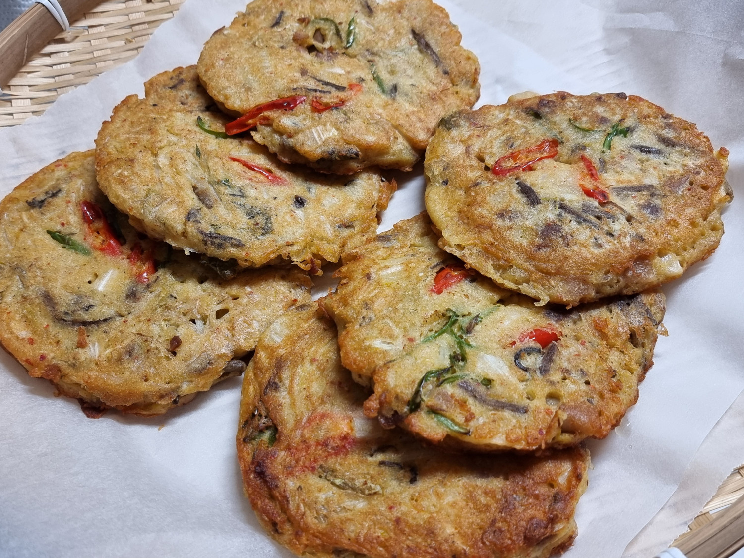 녹두빈대떡은 식용유를 넣어 바싹 구워도 맛있지만, 돼지기름이 들어가면 더 맛있답니다.