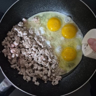 달걀 3개, 식용유 1큰술, 소금 약간, 후춧가루 약간