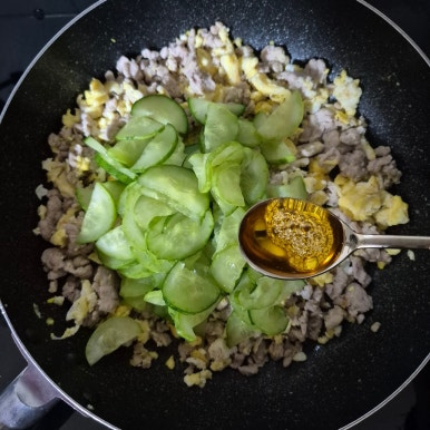 돼지고기 250g, 소금 약간, 후춧가루 약간, 식용유 1킁술