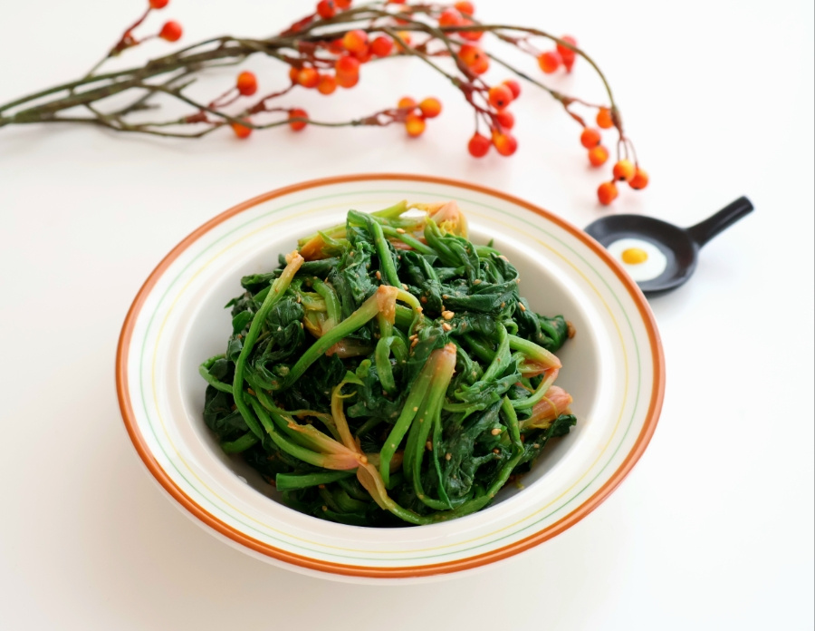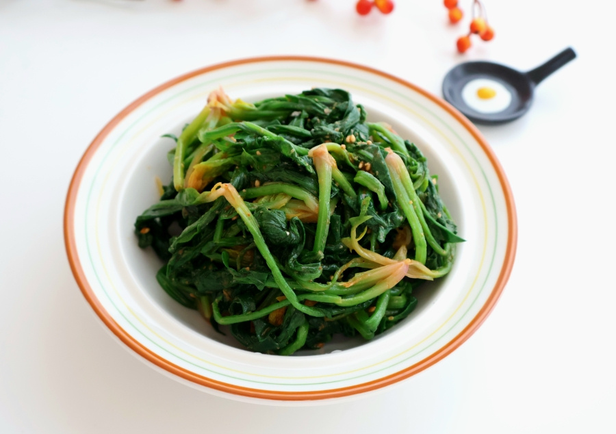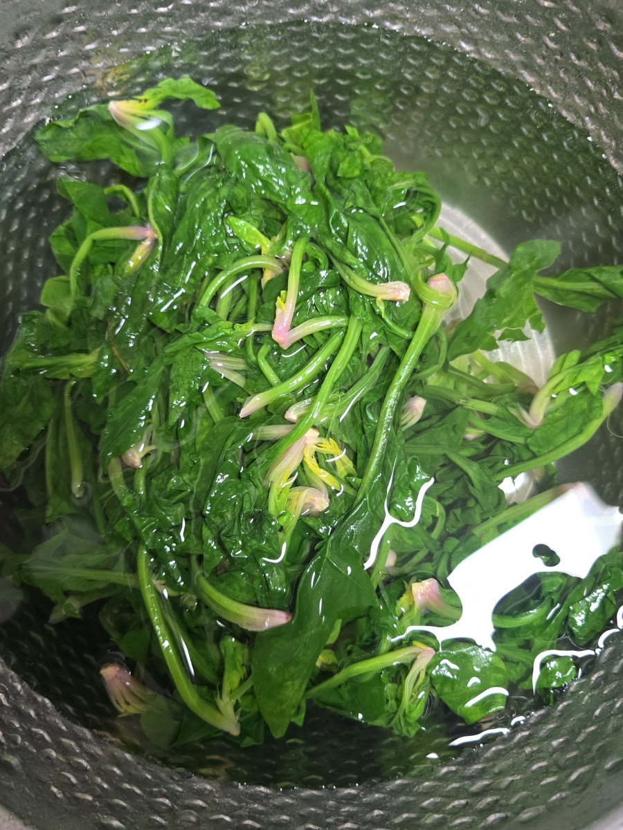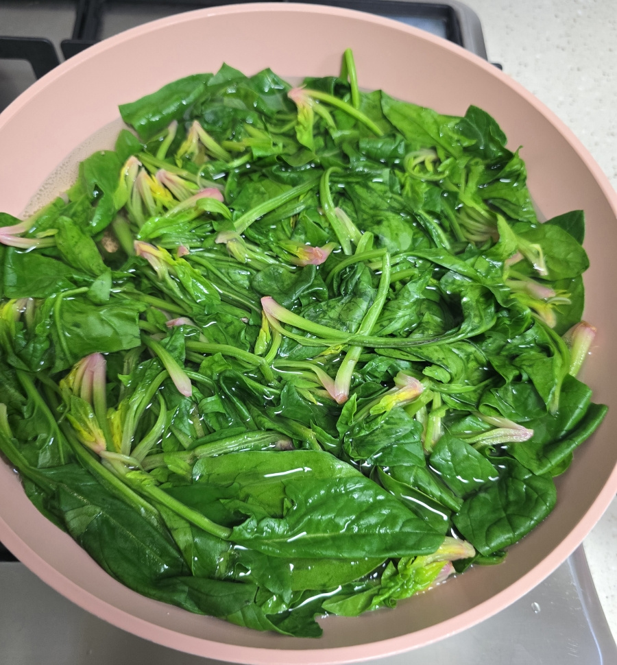 시금치를 넣고 40초 ~ 1분 이내로 숨이 죽으면 즉시 건져 내주세요.