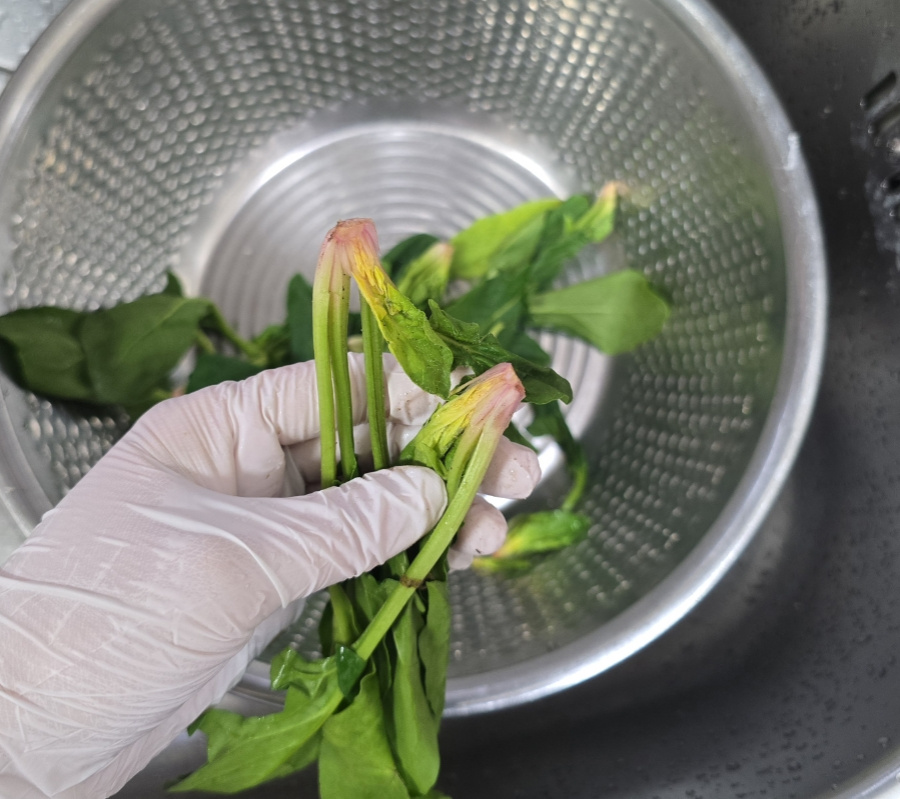 볼에 찬물을 받아 2~3번 흔들어 씻어 흙을 완전히 제거하고 물기를 살짝 털어 준비합니다.
