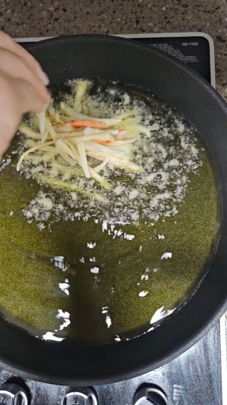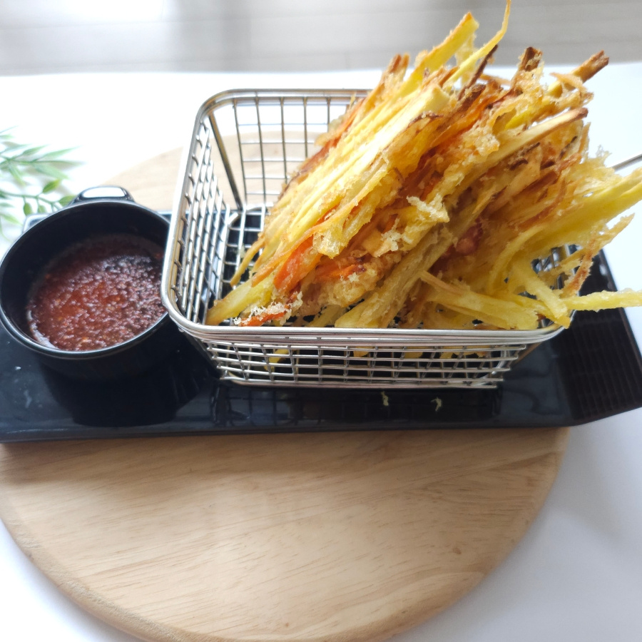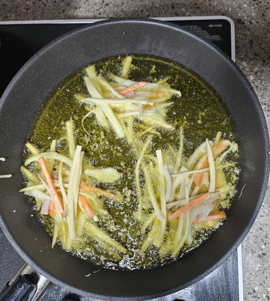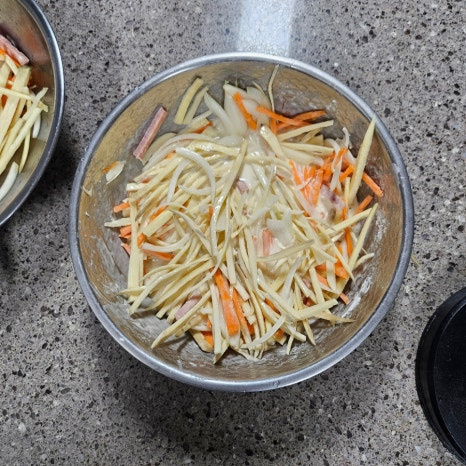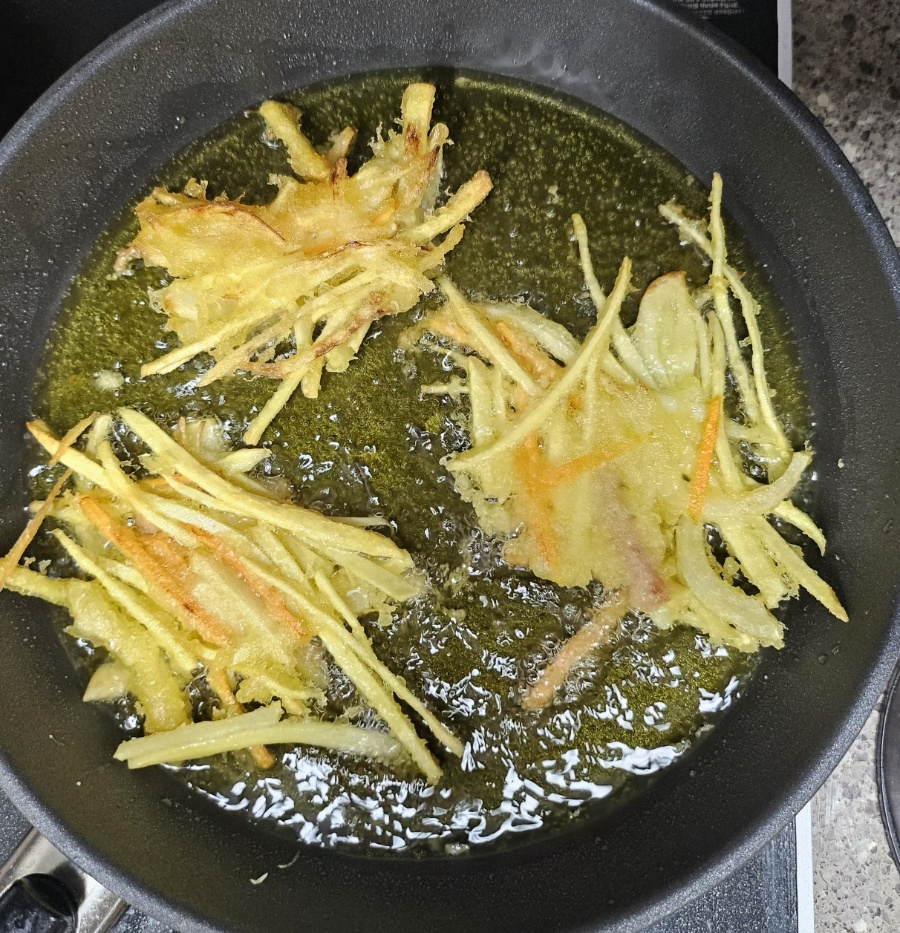 튀김가루와 탄산수의 조합은 튀김옷에 기포감을 주어 훨씬 더 바삭한 식감을 만들어 줍니다.
