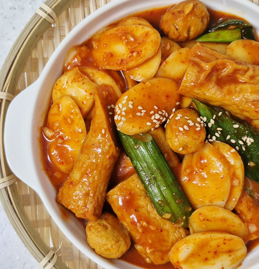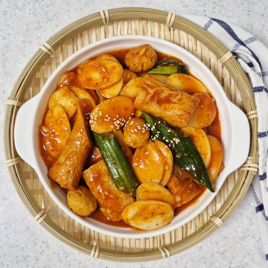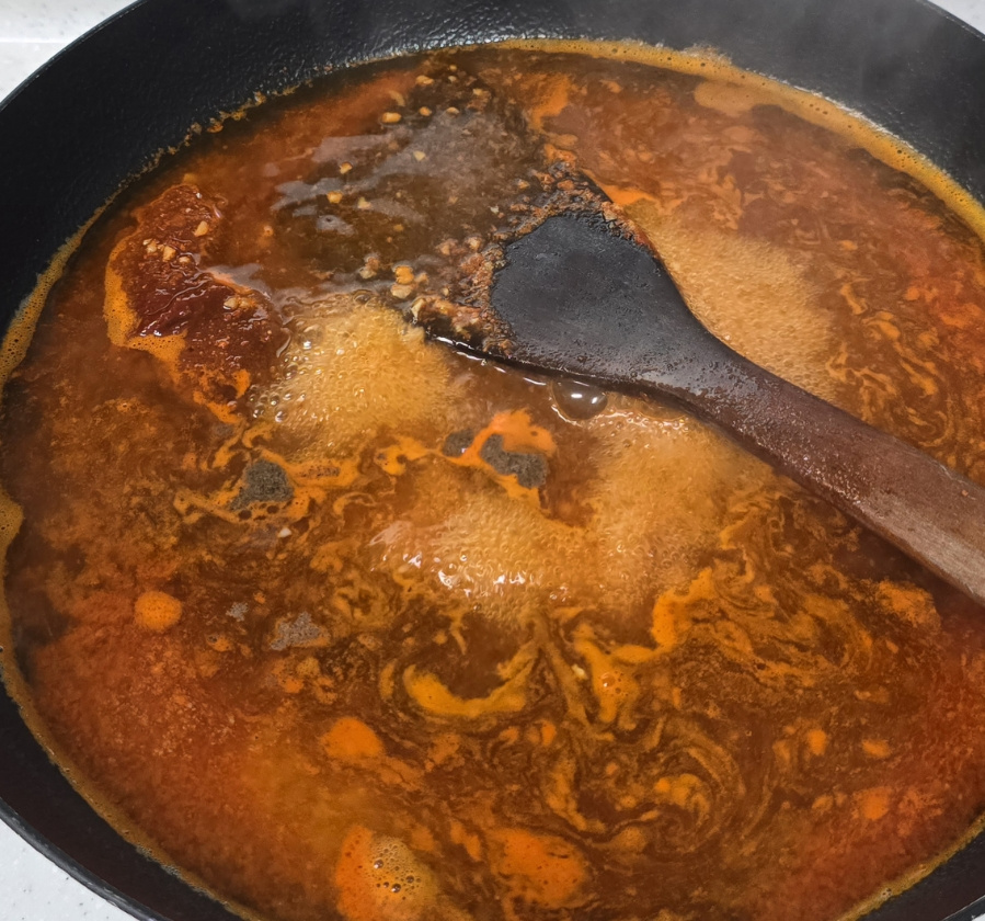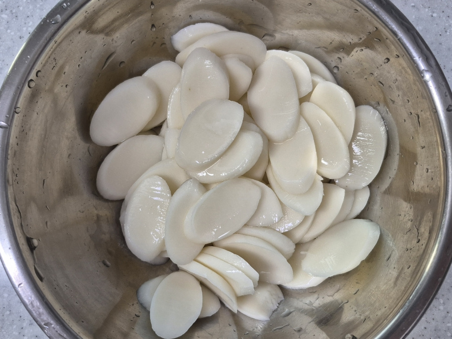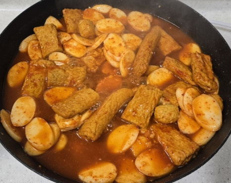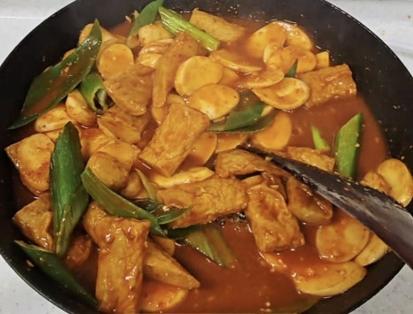 떡국떡이 얇기 때문에 바닥에 달라붙을 수 있으니 주걱으로 저어가며 양념을 졸여 줍니다.