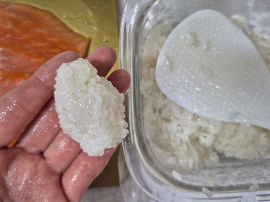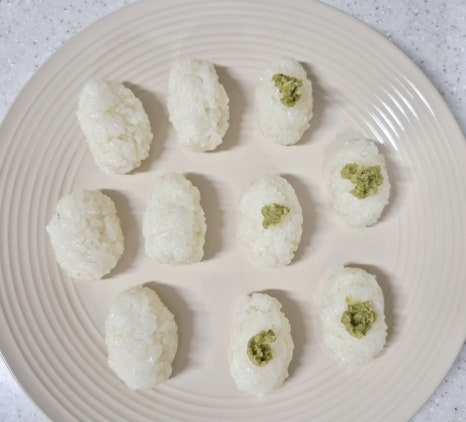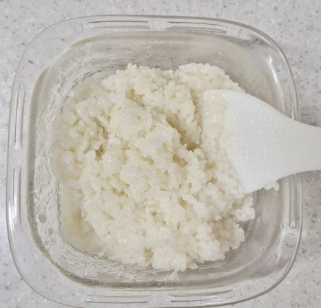 밥알이 으깨지지 않게 주걱으로 세워 섞어 줍니다.