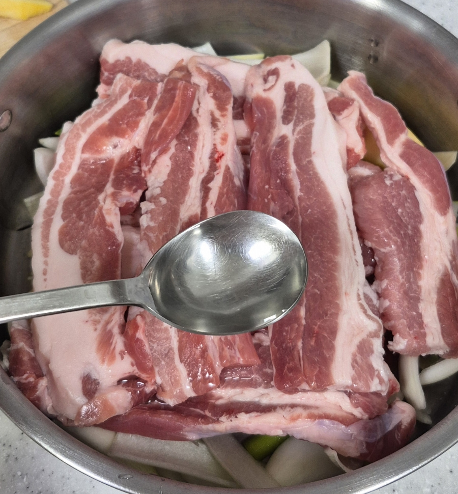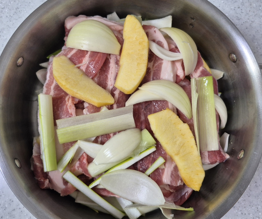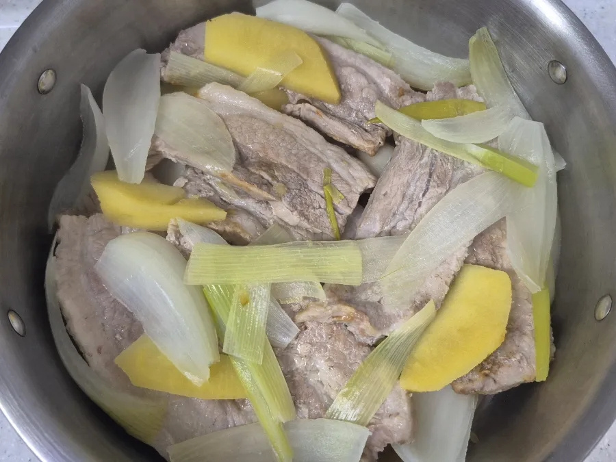 너무 오래 삶으면 수분이 빠져 고기가 뻣뻣해질 수 있으니 촉촉하게 익도록 삶아 주세요.
