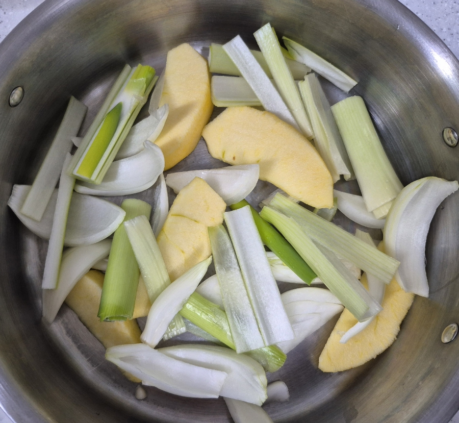 불이 세면 바닥에 깐 재료들이 탈 수 있으니 불 조절을 해 주시고 중간에 뚜껑을 열어 물이 자작하게 생기고 있는지 확인합니다.