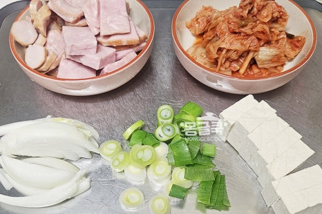 김치, 양파, 대파, 두부, 청양고추 등 나머지 재료도 썰어 준비해 주세요.
