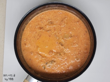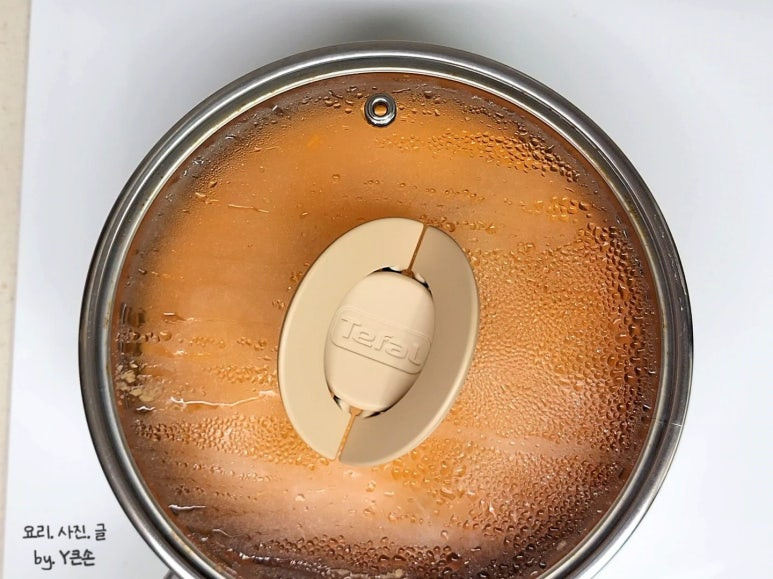 뚜껑을 닫아야 팡팡 튀지 않고 가끔 저어주어야 눌어붙지 않아요.